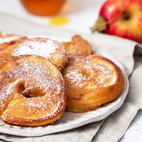 Karamellisierte Apfelkücherl mit Beerenragout