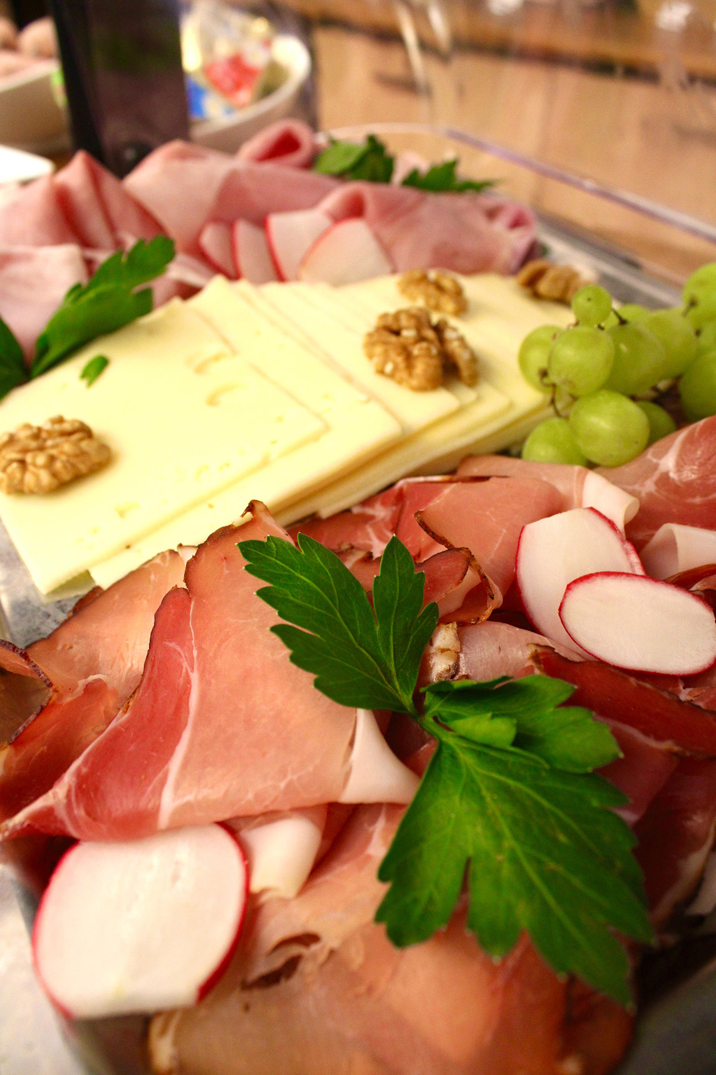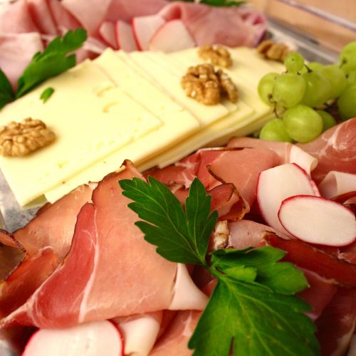 mit regionalen Wurstspezialitäten, kaltem Braten, Bergkäse und eingelegten gegrillten Gemüse